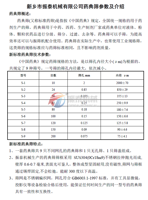 藥典篩介紹及1~9號(hào)篩框目數(shù)與孔徑對(duì)照表